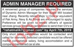 Admin Manager Jobs 2019 In Lahore