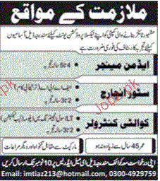 Admin Manager, Store Incharge and Quality Controller Wanted