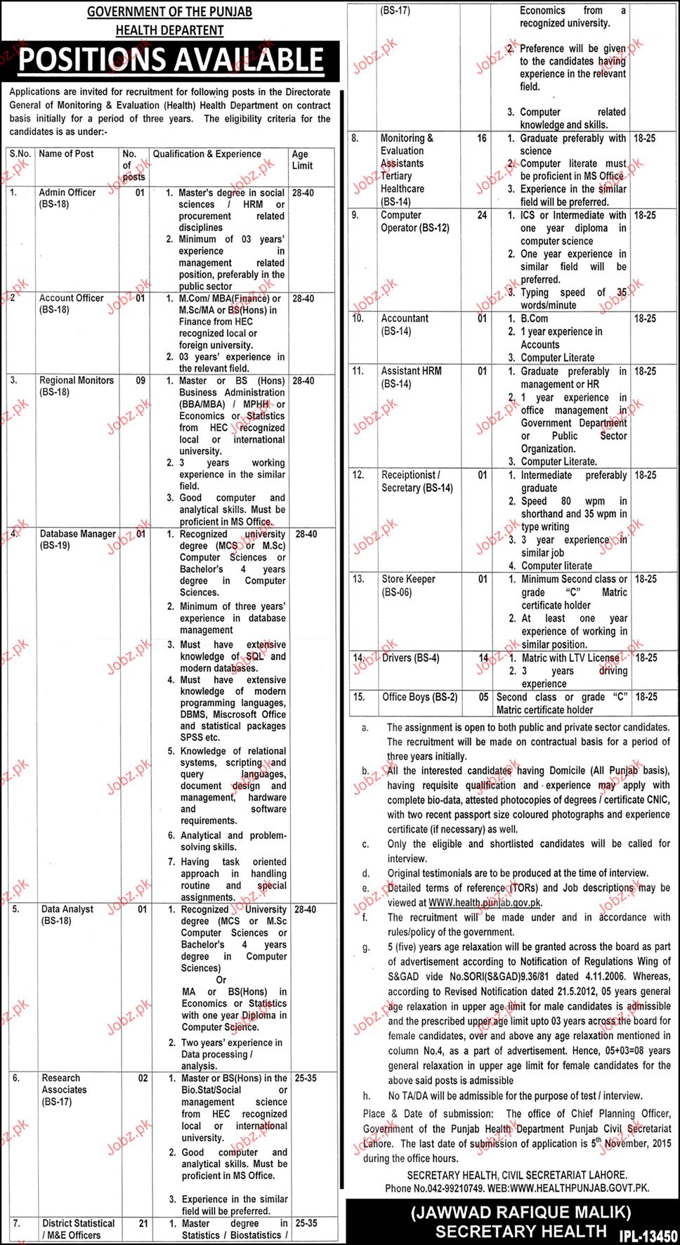 Apply as per details in job advertisement. Login to view further details of how to apply via https://www.jobz.pk online.