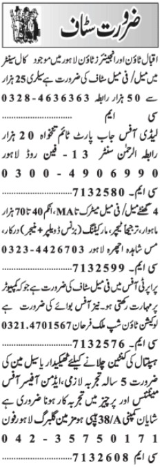 Private Company is looking for candidates for following posts as per job advertisement published in daily Jang Newspaper of May 9, 2023 for location Lahore, lahore Punjab Pakistan: