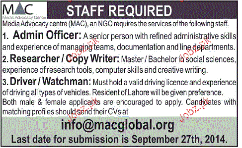 Admin Officer, Copy Writers and Drivers Job Opportunity