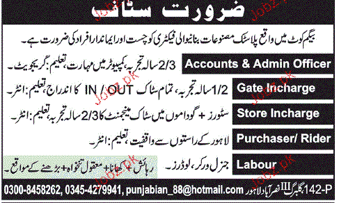 Admin Officer, Gate Incharge, Store Incharge Job Opportunity