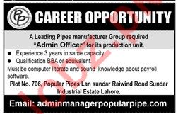 Latest Popular Pipes Group Admin Clerical Posts Lahore 2025
