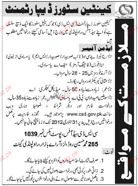 Latest Canteen Stores Department Management Posts Rawalpindi 2025