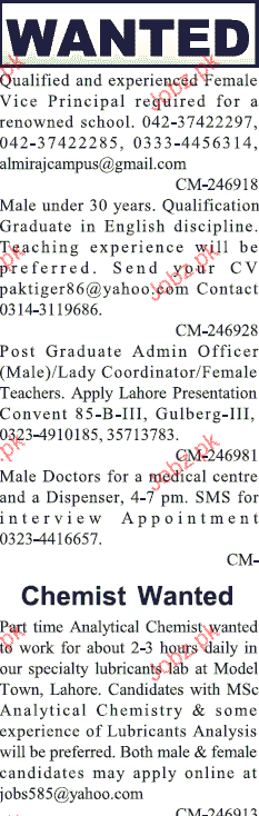 Apply as per details in job advertisement. Login to view further details of how to apply via https://www.jobz.pk online.
