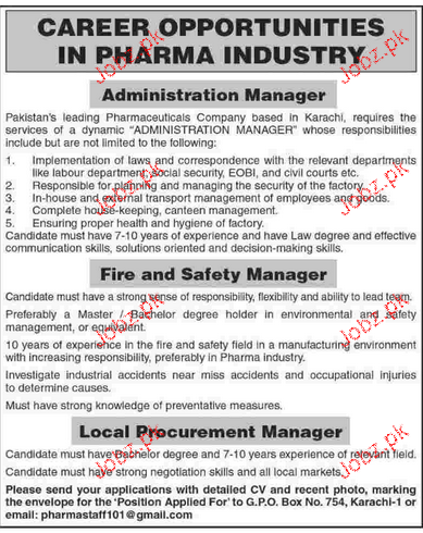 Apply as per details in job advertisement. Login to view further details of how to apply via https://www.jobz.pk online.
