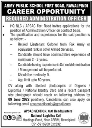 Army Public School jobs advertisement dated about 25 May 2022 in daily The News Newspaper invites application for the vacant post of administration officer in Rawalpindi, rawalpindi Punjab Pakistan. Candidates with Bachelor and Master etc. educational background will be preferred.
