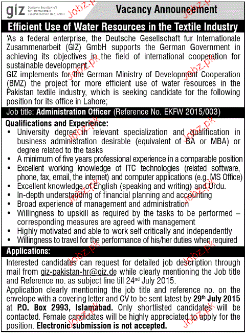 Apply as per details in job advertisement. Login to view further details of how to apply via https://www.jobz.pk online.