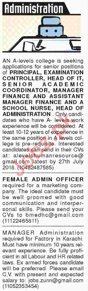 Consultants, Trainee Managers, Academic Coordinator, Production Manager, Financial Sales Consultants, Assistant Import & Export Manager, General Manager, Floor Manager, Financial Advisor, , Primary Teacher, Secondary Teacher, Subject Teacher (Maths, Physics, Chemistry, Biology, English, Urdu, Pak Studies & Islamic Studies), Montessori Teacher and Female Teacher needs in well reputed companies.