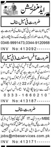 Private Organization jobs advertisement dated about 20 September 2022 in daily Aaj Newspaper invites application for the vacant post of computer operator, female staff and office assistant in Peshawar, peshawar Khyber Pakhtunkhwa KPK Pakistan. Preferred Education is Bachelor, Master and Intermediate etc.