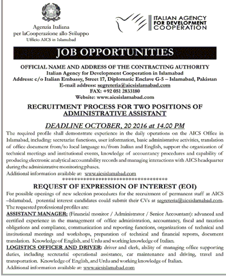 Apply as per details in job advertisement. Login to view further details of how to apply via https://www.jobz.pk online.