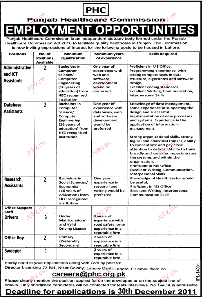 Apply as per details in job advertisement. Login to view further details of how to apply via https://www.jobz.pk online.