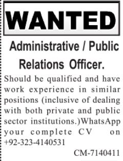 Private Company jobs advertisement dated about 10 January 2024 in daily Jang Newspaper invites application for the vacant post of pro, public relations officer and administrative officer in Lahore, lahore Punjab Pakistan. Educational qualifications required Bachelor, Intermediate and BA etc.