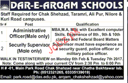 Administrative Officers And Security Supervisor Wanted