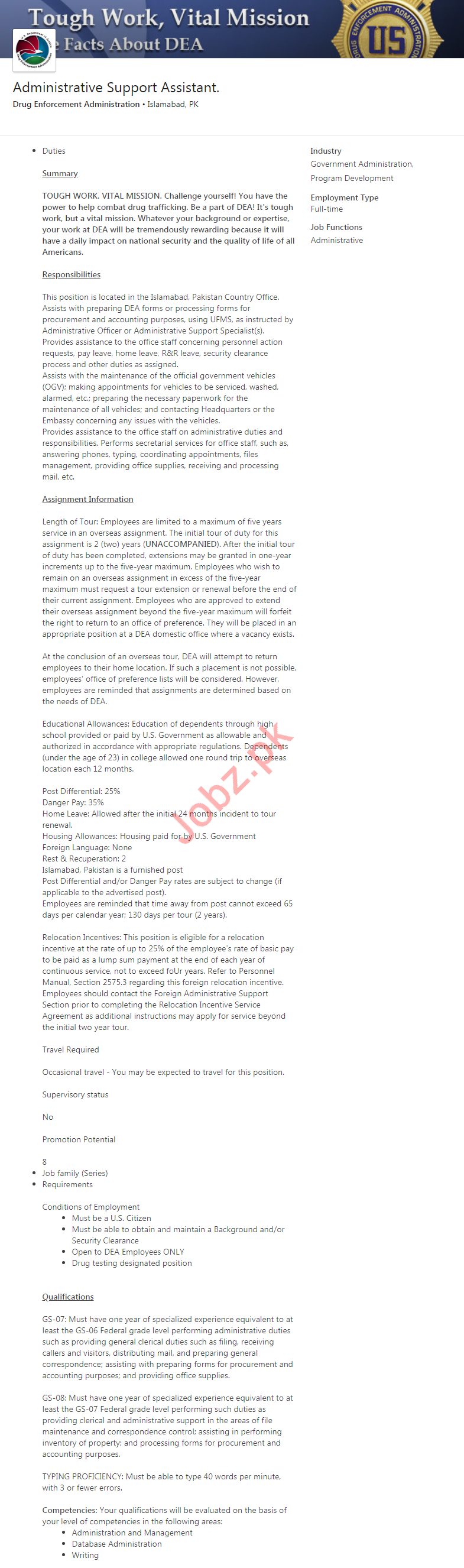 Latest Drug Enforcement Administration Admin Clerical Posts Islamabad 2025