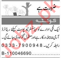 Apply as per details in job advertisement. Login to view further details of how to apply via https://www.jobz.pk online.