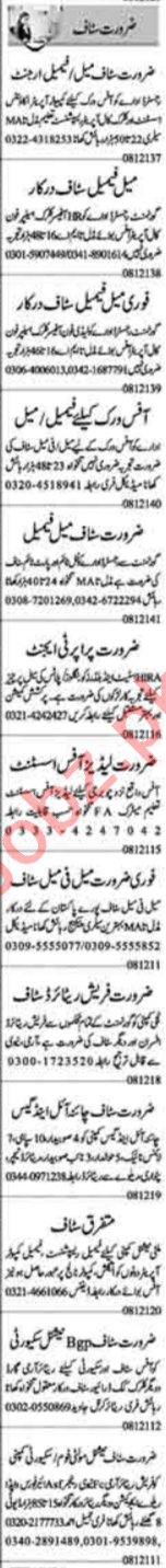 Administrator, Clerk, Admin Officer, Data Entry Operator, Cashier, Manager, Sales Staff, Computer Operator, Careem Driver, Uber Driver, Marketing Staff, Delivery Boy, Call Operator, Office Assistant, Hotel Manager, Sweeper, Recovery Officer, Pharmacist, Welder, Electrician seeks in well reputed companies.