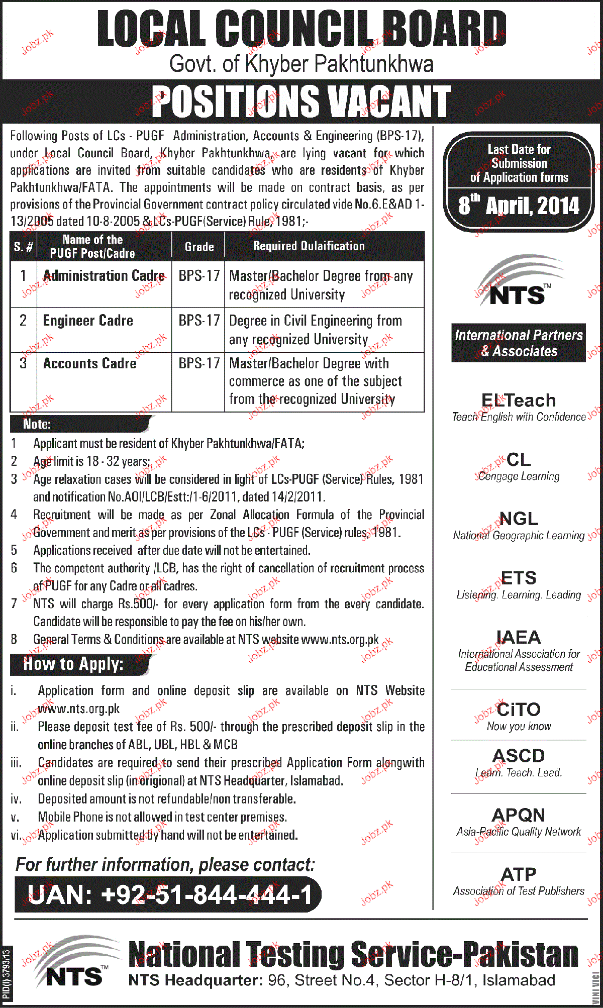 Apply as per details in job advertisement. Login to view further details of how to apply via https://www.jobz.pk online.