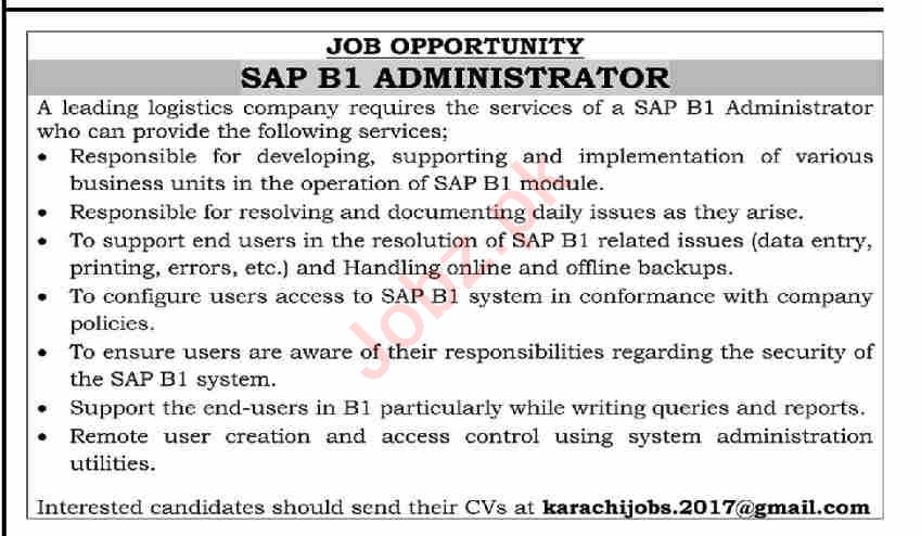 Private Company Karachi, karachi Sindh Pakistan invites applications from eligible candidates for the post of sap bi administrator as per advertisement of October 10, 2022 published in daily Dawn Newspaper. Educational qualifications required Bachelor and Master etc.