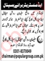 Suleman Roshan Hospital and Medical College jobs advertisement dated about 27 November 2022 in daily Jang Newspaper invites application for the vacant post of administrator in Tando Adam, tando adam Sindh Pakistan. Persons with Master and Bachelor etc. education can apply.