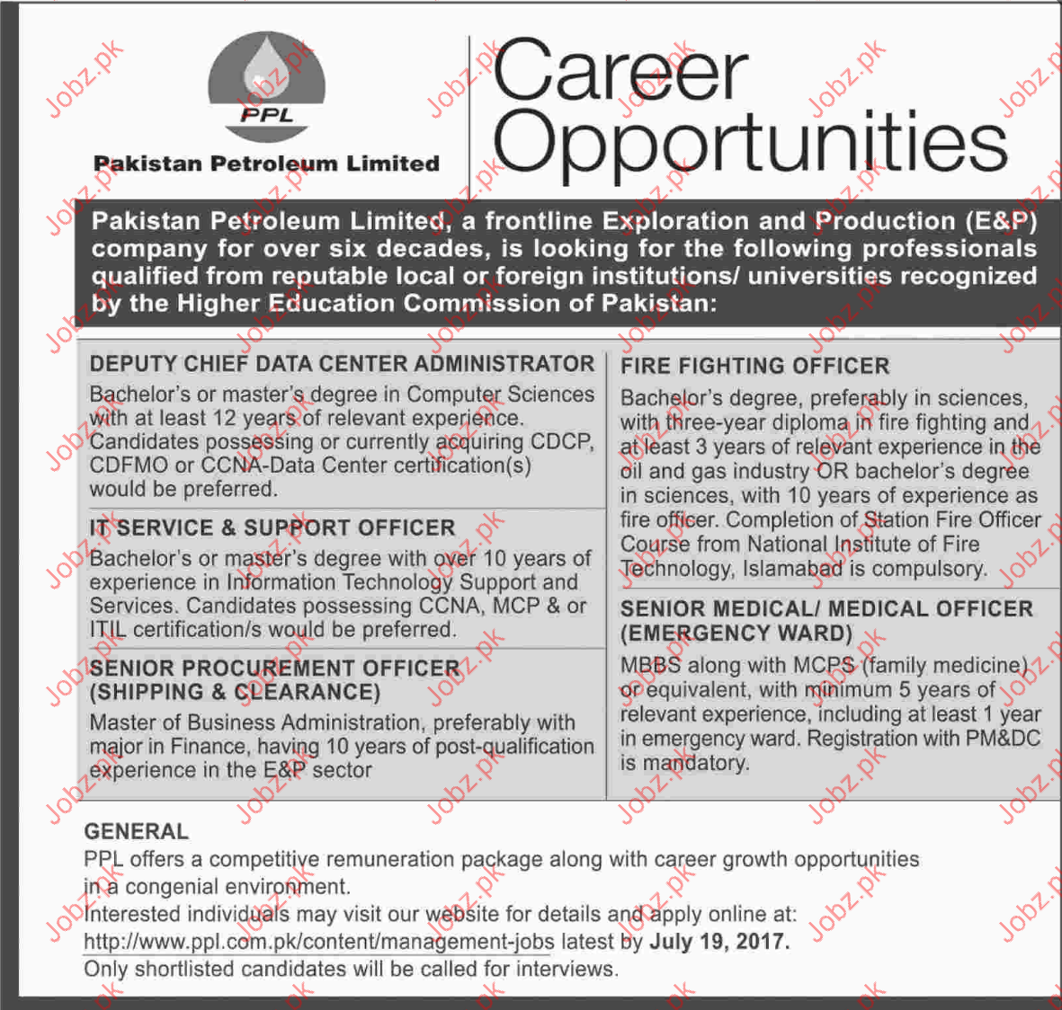Apply as per details in job advertisement. Login to view further details of how to apply via https://www.jobz.pk online.