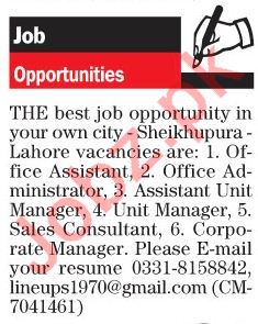 Apply as per details in job advertisement. Login to view further details of how to apply via https://www.jobz.pk online.