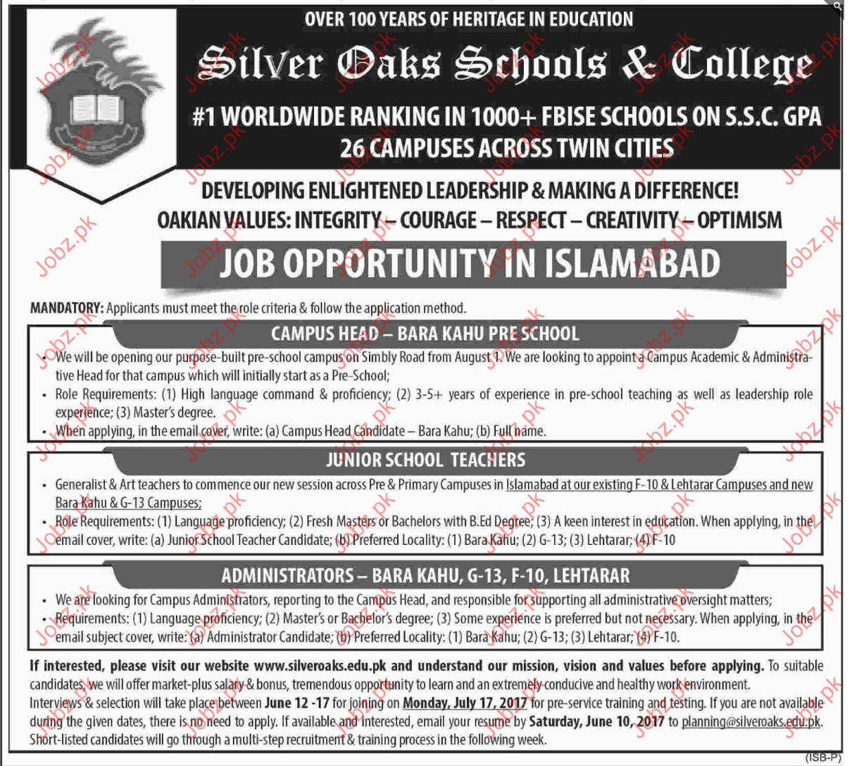 Apply as per details in job advertisement. Login to view further details of how to apply via https://www.jobz.pk online.