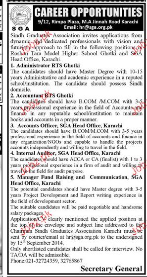 Administrators, Accountant, Account Officers Wanted