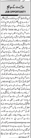 Apply as per details in job advertisement. Login to view further details of how to apply via https://www.jobz.pk online.