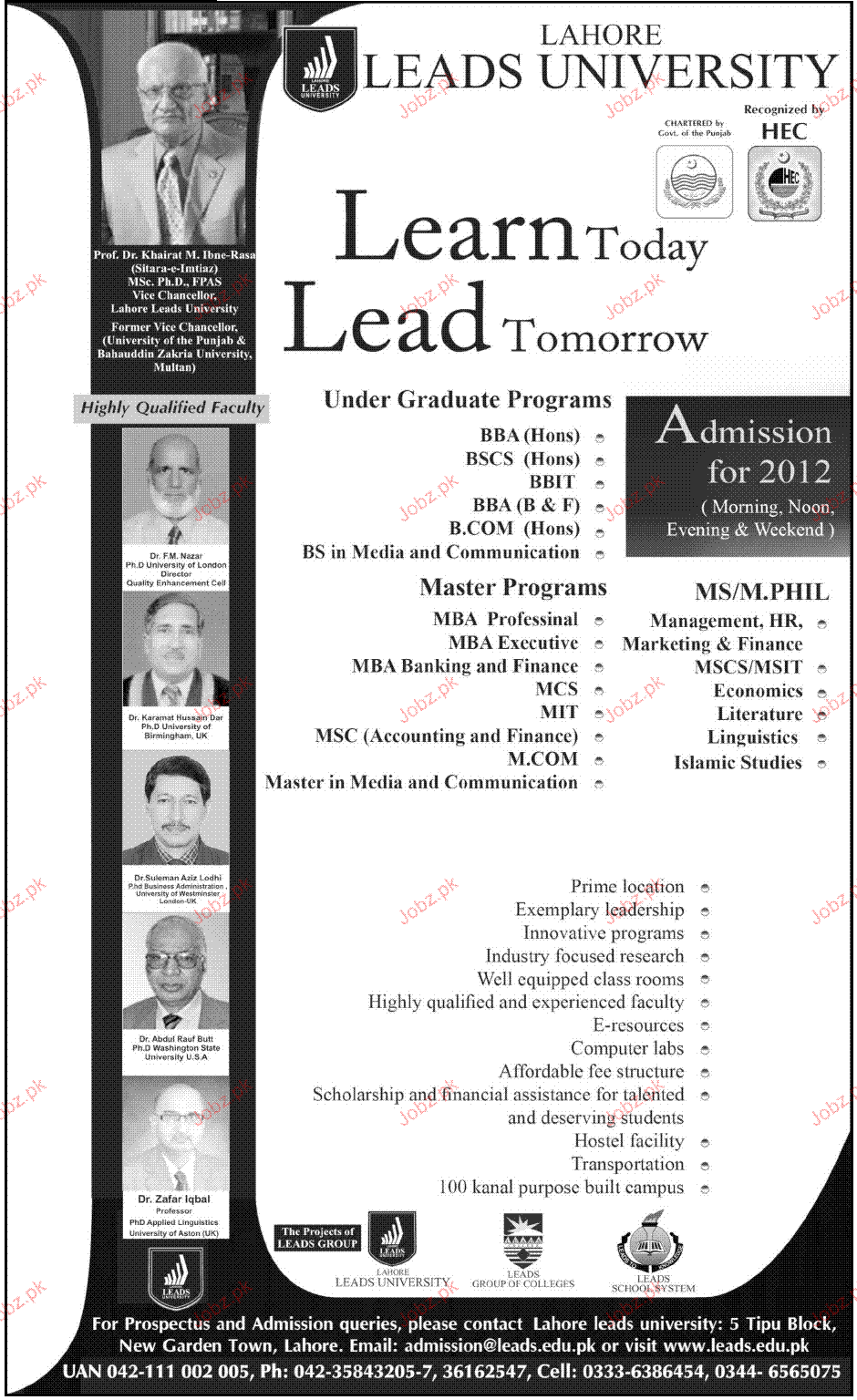 Admission in BBA, BSCS, B.Com, MBA and M.Com in Lahore Leads University in Lahore Read newspaper ad for exact details.