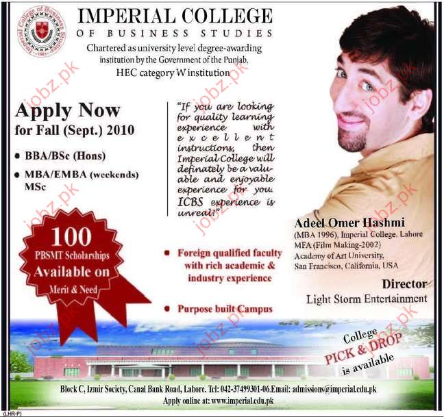 Admission in BBA, MBA,EMBA & MBA, MSc in IMPERIAL COLLEGE, PUNJAB Read newspaper ad for exact details.