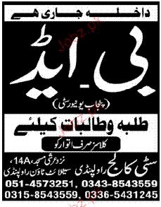 Admission in B.Ed City College Rawalpindi in Rawalpindi Read newspaper ad for exact details.