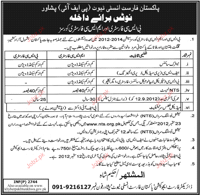 Admission in Bsc and Msc Forestry in Pakistan Forest Institute Peshawar Read newspaper ad for exact details.