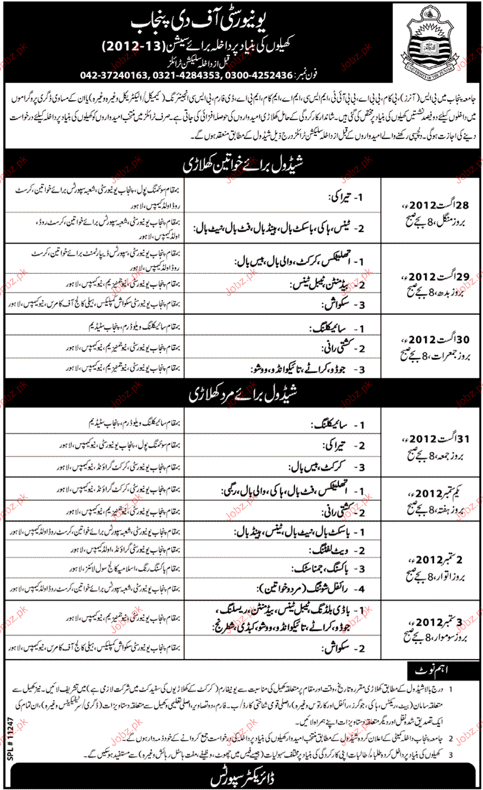 Admission in BSc Honors, B.Com, BBA IT, Msc, MA, M.Com, MBA in University of The Punjab in Lahore Read newspaper ad for exact details.