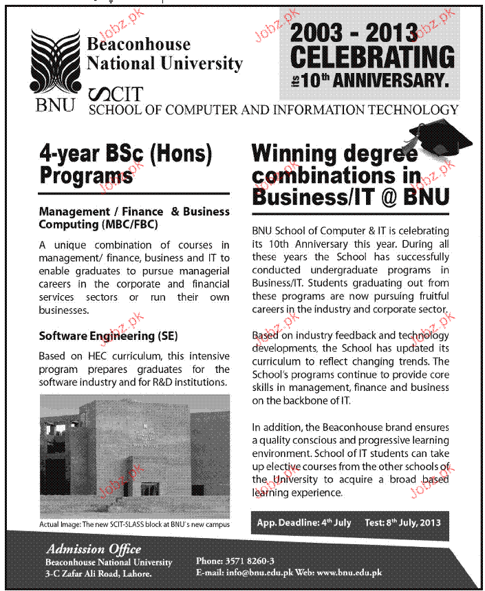 Admission in BSc Hons in Beconhouse National University in Lahoe Read newspaper ad for exact details.