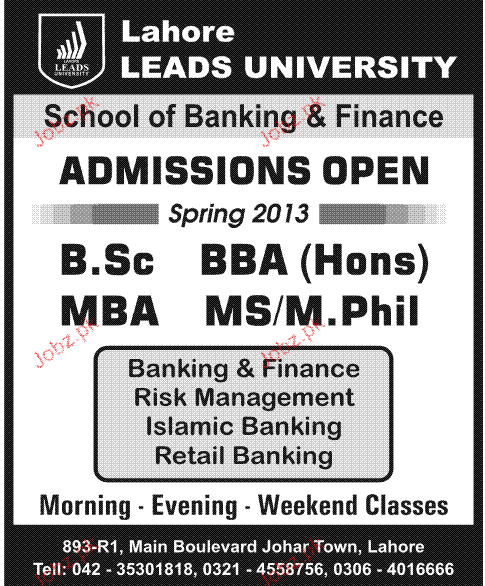 Admission in BSc, MBA, BBA and Ms in Lahore Leads University in Lahore Read newspaper ad for exact details.