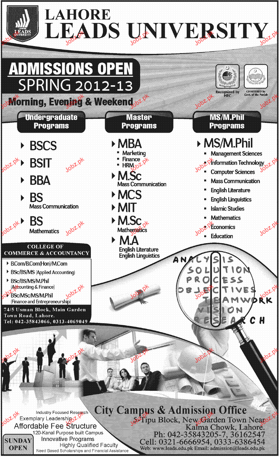 Admission in BSCS, BSIT, BBA, BS, MBA, Msc, Mcs, MIT and MA in Lahoe Leads University in Lahore Read newspaper ad for exact details.