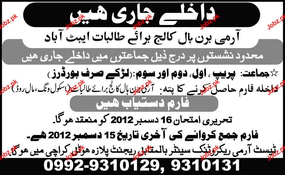 Admission in Class Prep to III in Army Burhan College in Abottabad Read newspaper ad for exact details.