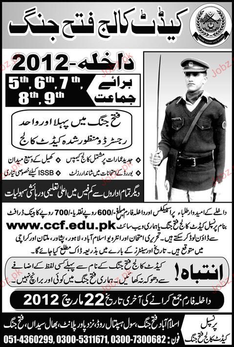Admission in Class V to IX in Cadet College Fateh Jhang Read newspaper ad for exact details.