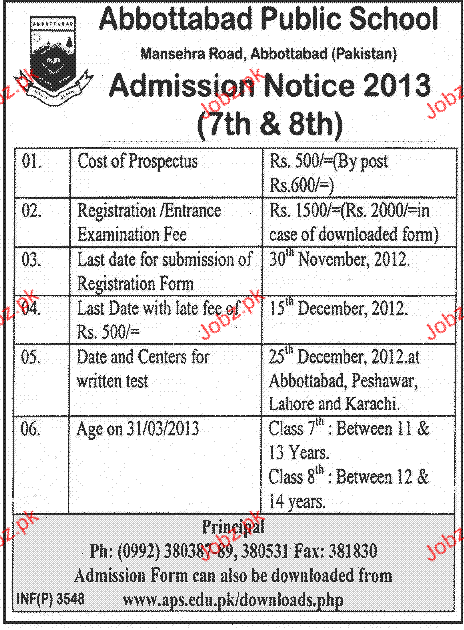Admission in Class VII & VIII in Abbottabad Public School in Abbottabad Read newspaper ad for exact details.