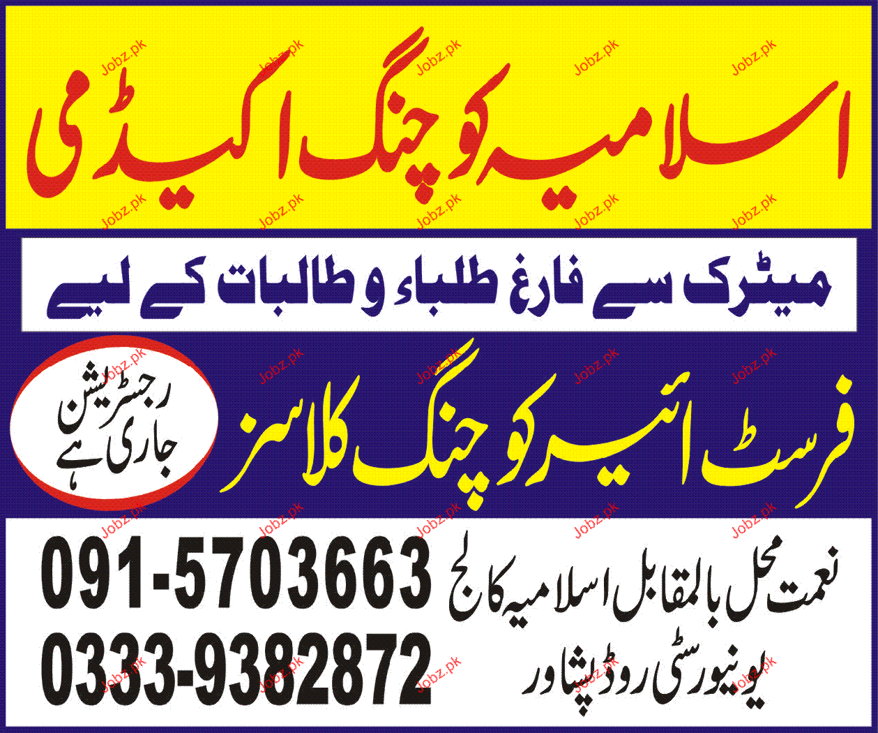 Admission in Class XI in Islamia Coaching Academy in Peshawar Read newspaper ad for exact details.