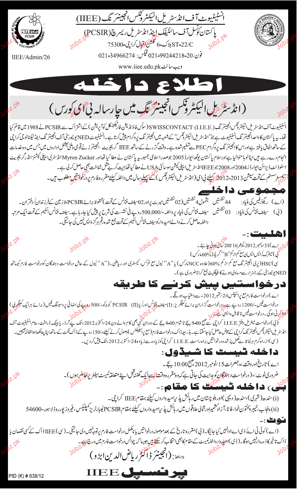 Admission in Engineering in Institute of Industrial Electronics Engineering in Karachi Read newspaper ad for exact details.