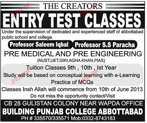 Admission in Entry Preparation Classes in Building Punjab College in Abbottabad Read newspaper ad for exact details.