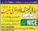 Admission in Entry Test Preparation in NICE Academy in Peshawar Read newspaper ad for exact details.