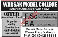 Admission in FSc and FA in Warsak Model College in Peshawar Read newspaper ad for exact details.