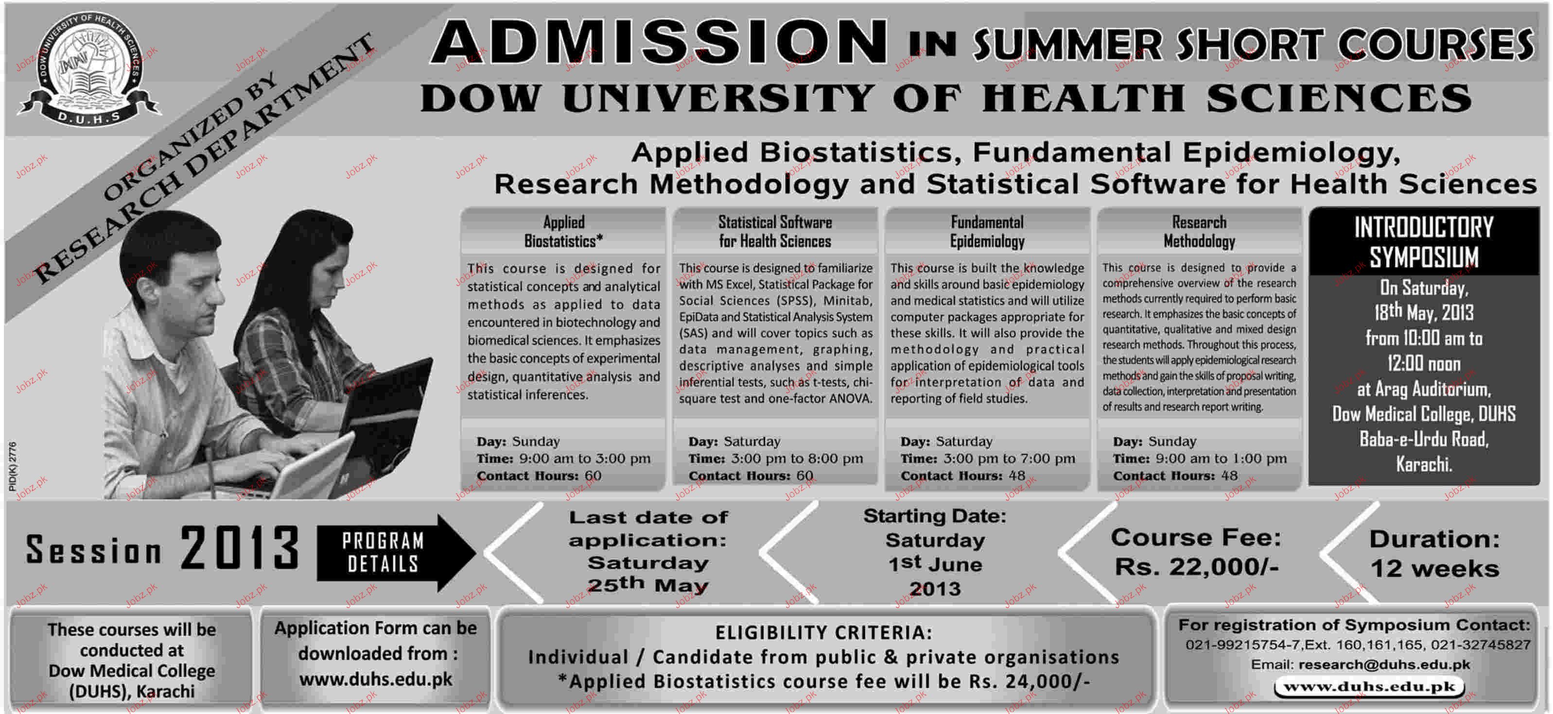 Admission in Health Courses in DOW University of Health Sciences in Karachi Read newspaper ad for exact details.