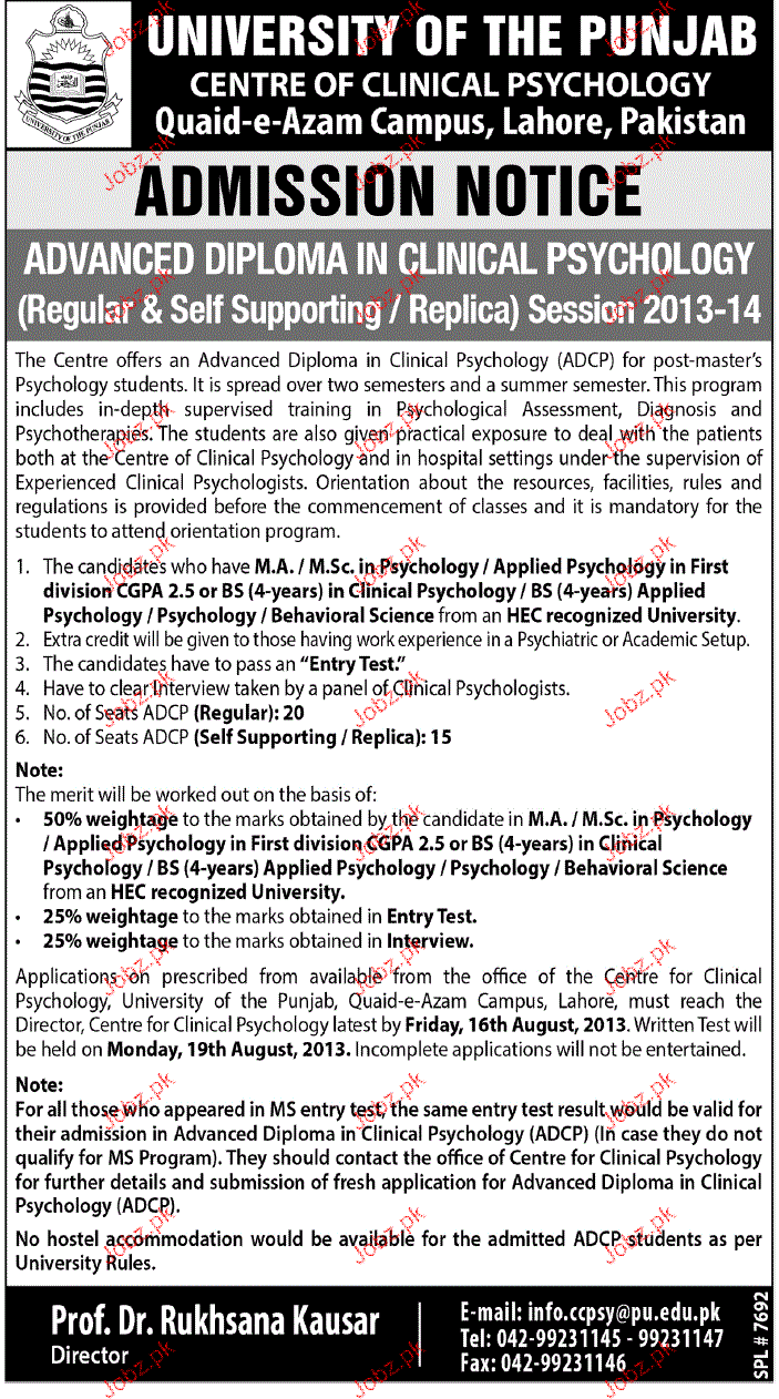 Admission in MA / MSc in University of the Punjab in Lahore Read newspaper ad for exact details.