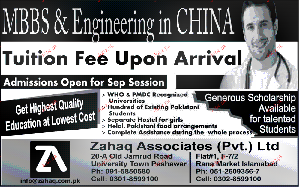 Admission in MBBS & Engineering in China in China Read newspaper ad for exact details.