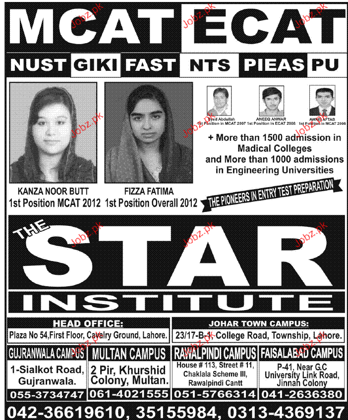 Admission in MCat and E Cat in Stars Academy in Faisalabad Read newspaper ad for exact details.