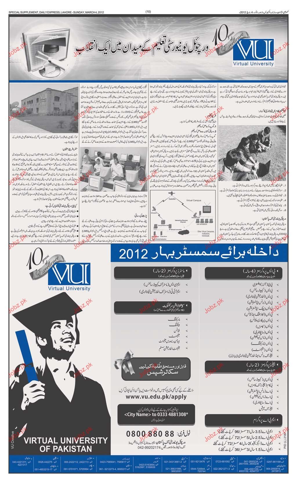 Admission in MS, BS, MA, BA and MBA in Virtual University in Lahore Read newspaper ad for exact details.